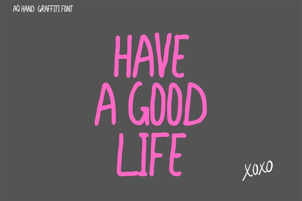 Hey there, creators! Looking for a font that feels bold, fun, and super energetic? Meet AQ Hand Graffiti Font, a cool all-caps font with a handmade vibe. It’s perfect for those who love adding a personal touch to their designs. Whether it’s posters, quotes, or social media posts, this font will make your message pop!