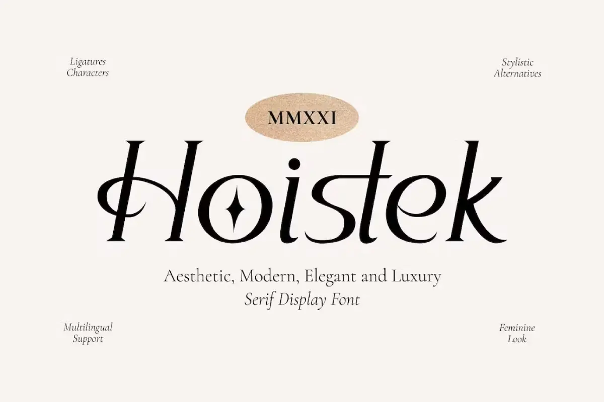 Hoistek is a beautiful serif font designed to enhance your visual creations such as logos, quotes, blog posts, and wedding invitations. It offers a variety of styles and letter combinations, making it perfect for branding projects, magazine imagery, and more.