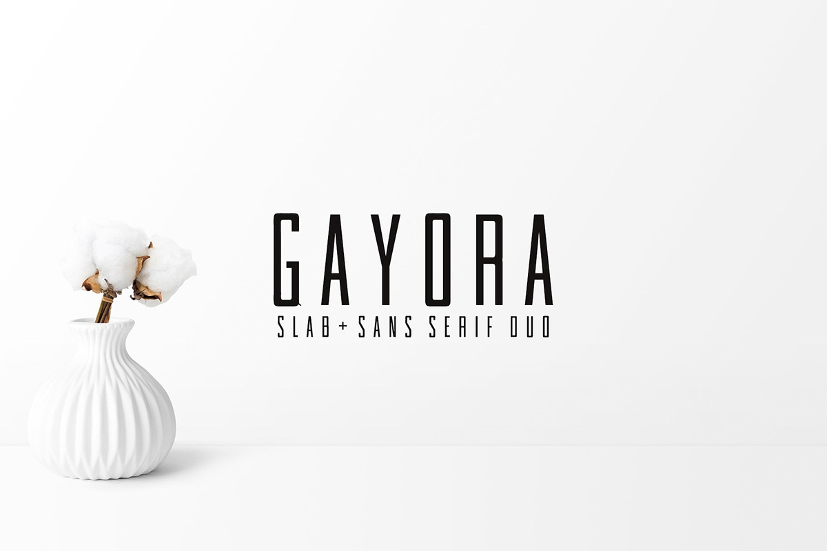 Gayora Duo is a clean, vibrant minimal (sans and slab) serif font. This font has a strong personality, that makes it perfect for use in the headline, wedding invitation, greeting cards, T-shirt, branding & logo projects, merchandise, social media posts, product packaging, or any design that you create.