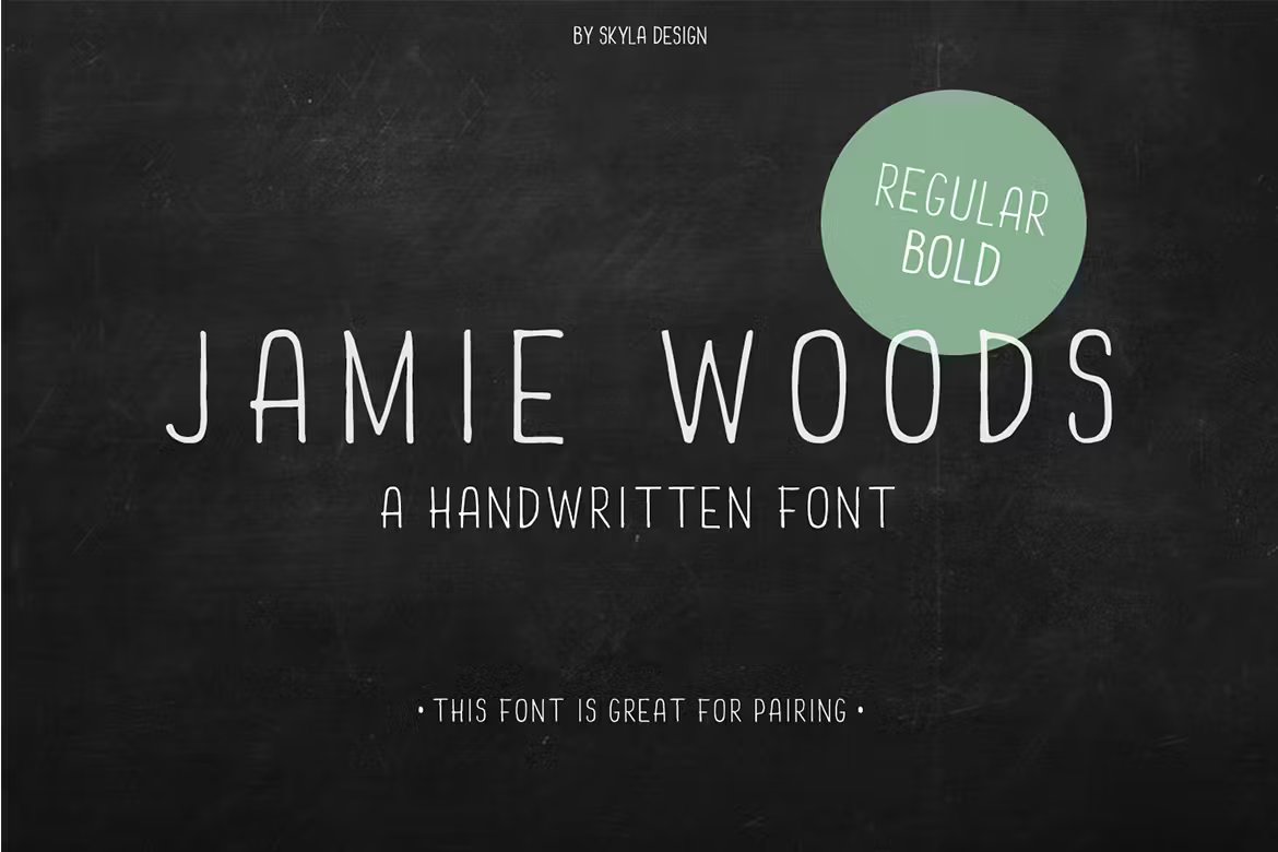 Jamie Woods is a condensed, handwritten font which comes in a Regular & Bold version. It’s a great font to use for pairing with other fonts and will look great on all your designs and branding materials.