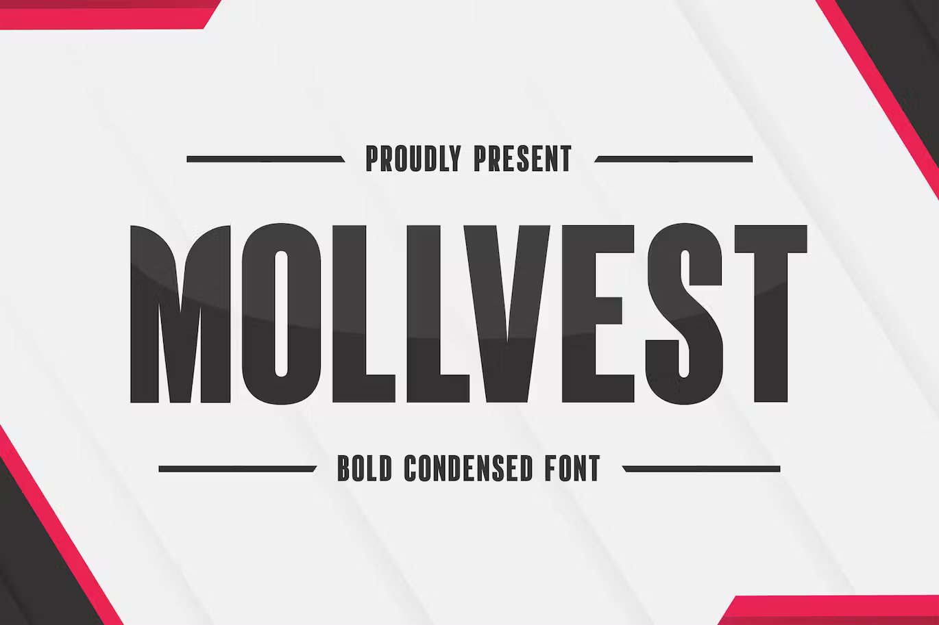 Make a bold statement with “Mollvest” – a bold condensed font that commands attention and leaves a lasting impression. With its strong and compact letterforms, “Mollvest” exudes confidence and impact. Each character is meticulously crafted to provide a sleek and modern look, making it perfect for headlines, logos, posters, and more.