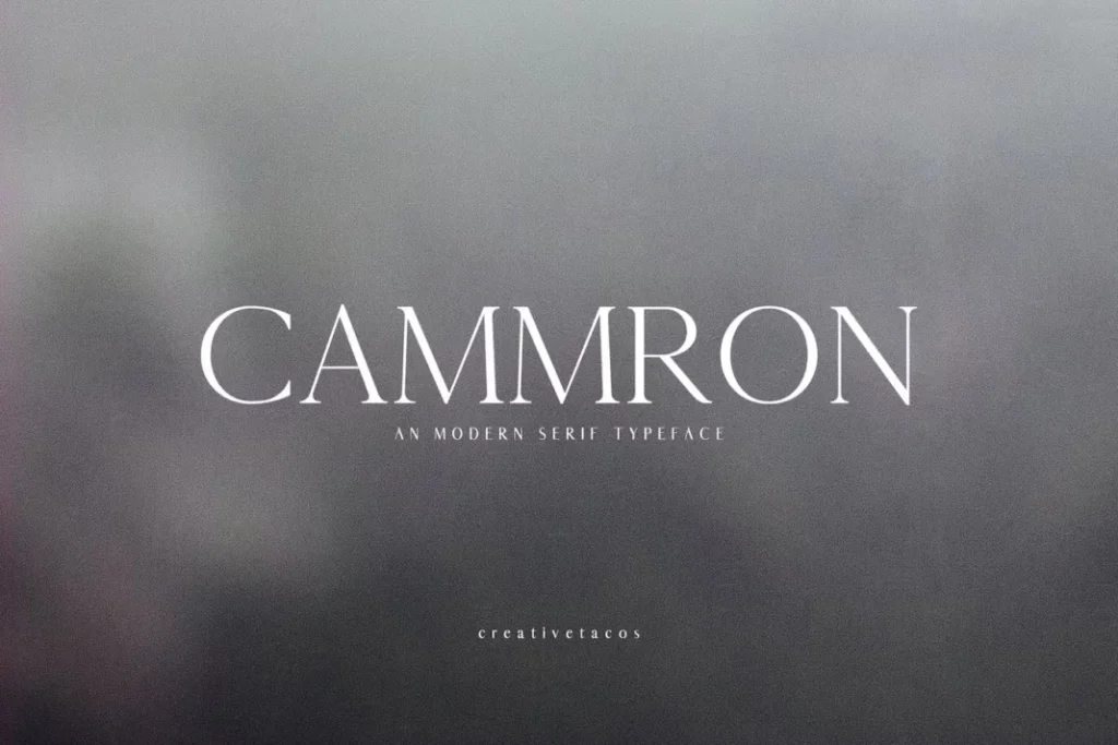 Cammron is a modern dashing serif font family. It includes all basic glyphs with Non-English characters. This font will pair beautifully with the script, signature or handwriting style. It is best for headlines, titles, magazines headings, logo, advertising, posters, quotes, web layouts, invitations, packaging design, books, branding, and nearly any creative design.