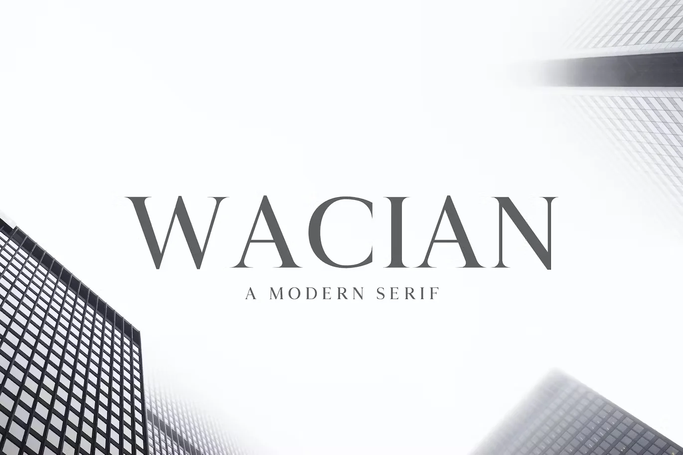 Wacian is a unique modern serif font. It contains 5 weights with all basic glyphs with Non-English characters. Wacian can be used for headlines, posters, branding, packaging, presentations, logo, quotes, titles, magazines headings, web layouts, advertising, invitations, packaging design, books, and nearly any creative design.