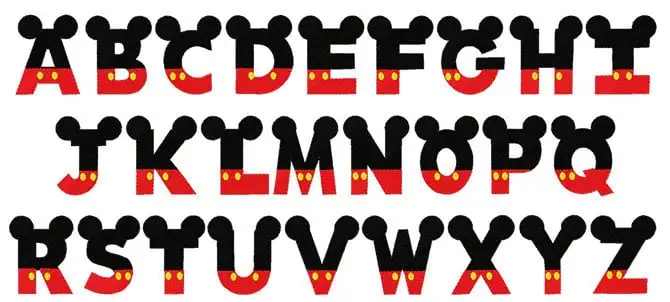 Each letter has Mickey Mouse ears built into it—literally. It’s playful, clear, and instantly makes your text feel like Disney fun. Perfect for cake toppers, party labels, or anything Mickey-themed. Best when used in big sizes so the ears show well.