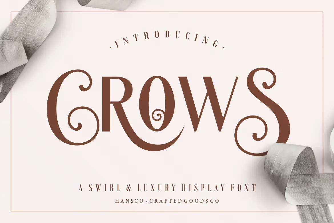 Crows is a classy display sans serif font with a elegant and clean style that is perfect for multipurpose projects. It has a unique look with curly tails that make it stand out from other fonts. This font would be a great choice for branding, quotes, print templates, packaging, invitations, music labels, product labels, logos and more.