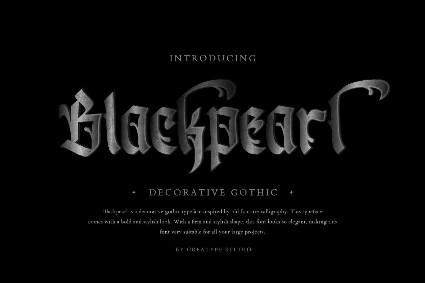 Blackpearl is a decorative gothic inspired by the blackletter font. These fonts are specially crafted and pay close attention to strokes resulting in great looking fonts with their unique and bold shapes. Blackpearl is perfect for branding projects, logo, wedding designs, social media posts, advertisements, product packaging, product designs, label, photography, watermark, invitation, stationery and any projects that need handwriting taste.
