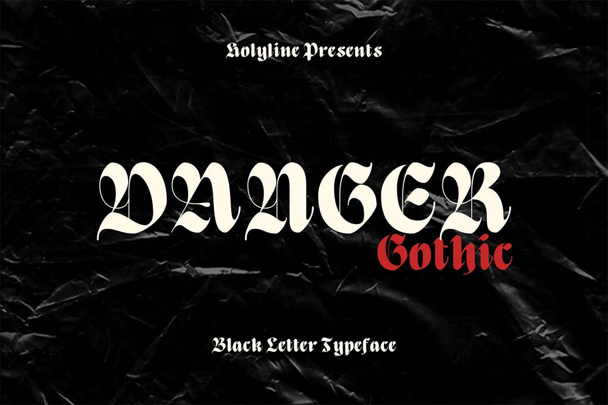 Danger Gothic by Holyline is a casual black letter font. This font comes with modern and unique shape inspire by Old English style. It’s very unique, playful, elegant and very easy to combine with your design style.