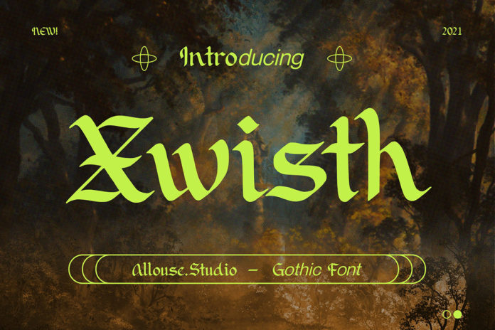 Xwisth is a bold, gothic font inspired by old lettering used in the 19th century. It is a cool, elegant and imposing blackletter font that can be used to a variety of designs, both formal and personalized.