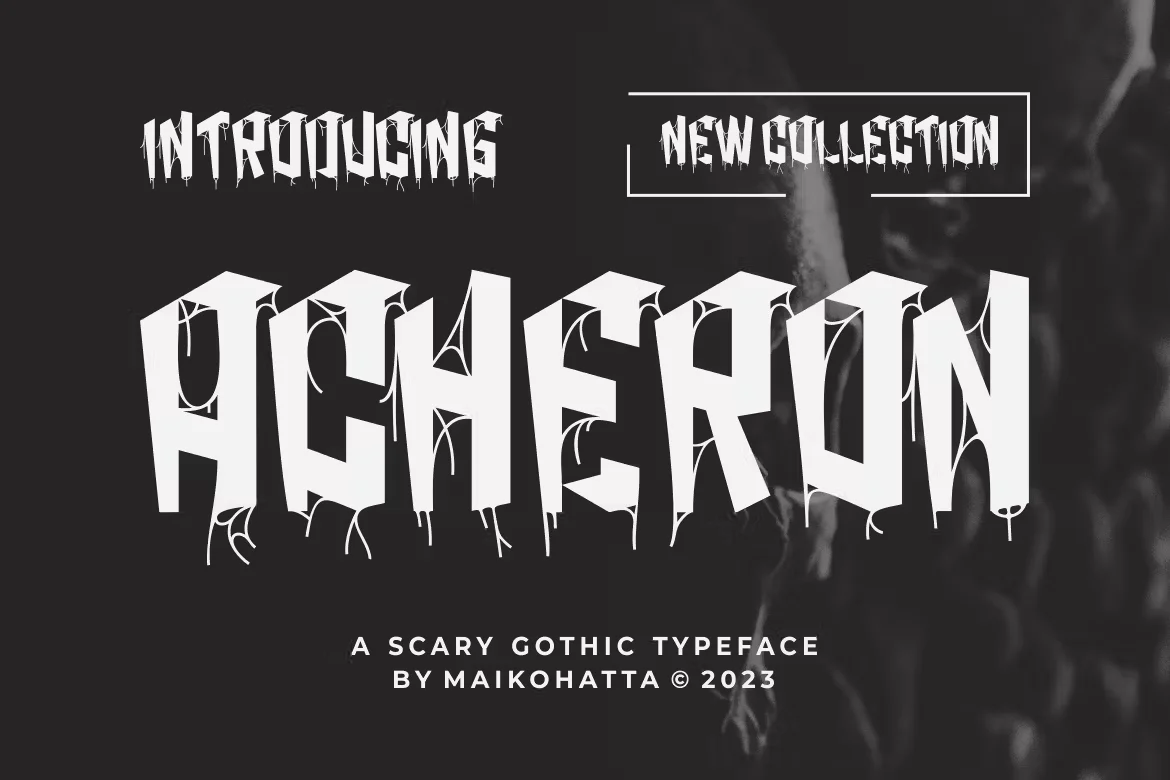 Introducing our new product ACHERON FONT – Scary Gothic Typeface. ACHERON FONT is a classic styled font that can be applied to book covers, movie titles, rock albums, arcade games or even vintage beers! It’s the perfect choice for a decorative gothic look that remains legible at a smaller size.