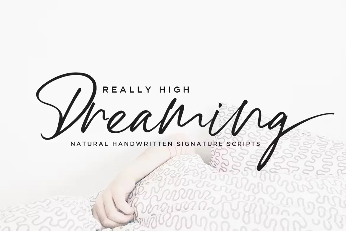 High Dreaming is a stylish modern and natural handwritten script font with casual chic flair. It is perfect for branding, wedding invites and cards, and maybe for red wine label.High Dreaming includes full set of gorgeous uppercase and lowercase letters, numerals, a large range of punctuation and ligatures.