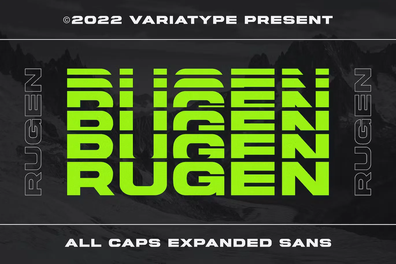 Rugen is an urban all-caps sans serif that perfectly matches your branding project and more.