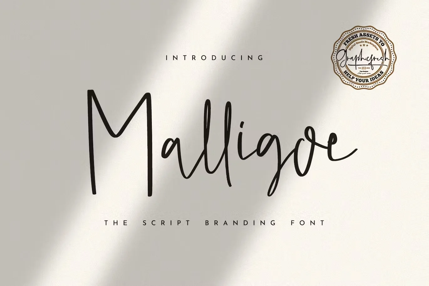 Malligoe – The Script Branding Font. It comes with an elegant, cute and feminine style which is perfect to make any design stand out! This font is perfect for branding, wedding invites, magazines, mugs, business cards, quotes, posters, and more.