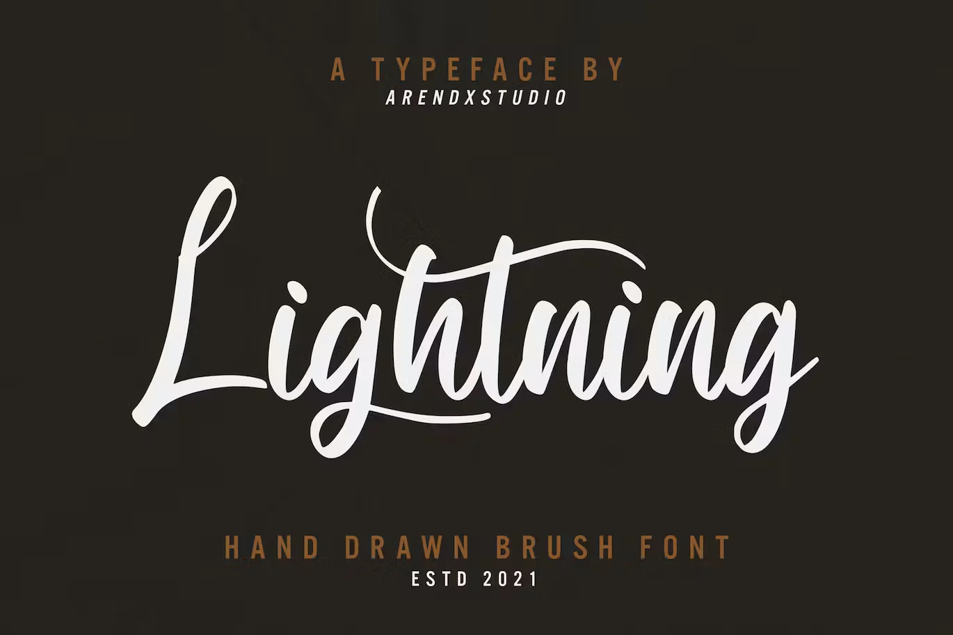 Lightning – Hand Drawn Brush Font is a font with distinctive handwritten characters perfect for branding projects, logos, wedding designs, media posts, advertisements, product packaging, product designs, labels, photography, watermarks, invitations, stationery, and any project who need handwritten dishes.