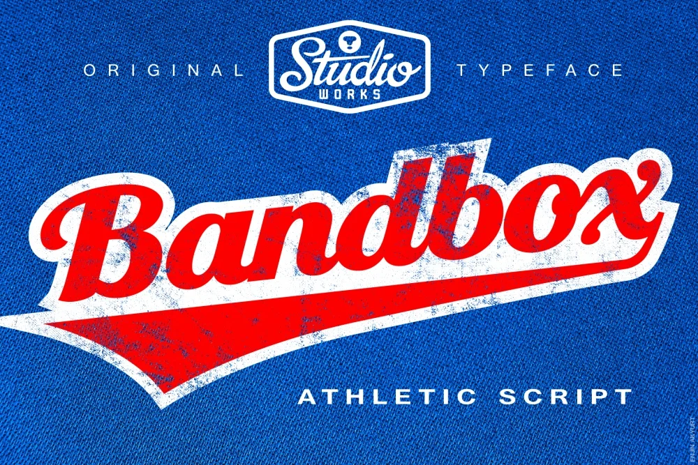 Inspired by classic sport logo lock-ups, Bandbox delivers with its heavy, streaming cursive letterforms. Bandbox’s wide, gently-sloped script comes bundled with a collection of ligatures and 18 athletic swash banners, perfect for logotype, posters and t-shirt designs.