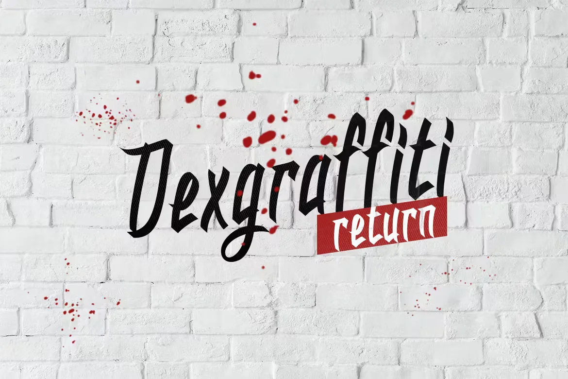 DHF Dexgraffiti Return is a novelty font published by Majestype.