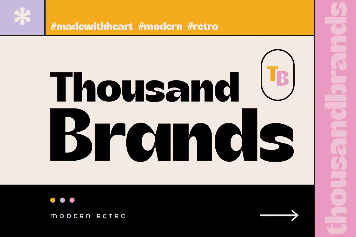 Thousand Brand is fancy font. It’s a fun font that’s very useful for many design projects. You can use it for logos, posters, menus, clothing, education projects, and more!