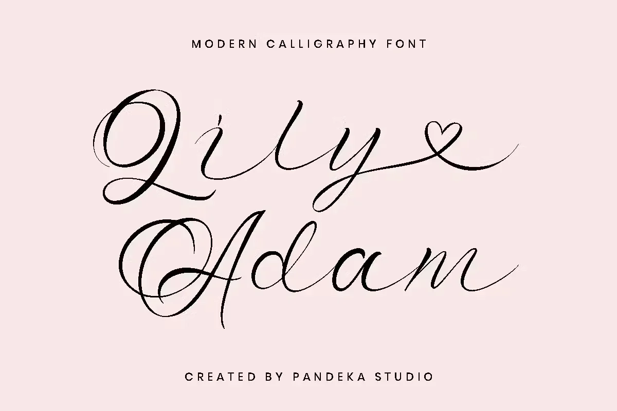 Introducing you my new modern calligraphy font – Lily Adam that particularly well suited for wedding invitations, save the date cards and feminine branding. Lily Adam includes full set of Uppercase and Lowercase Basic Characters, Numerals and Punctuation. Also it contains ligatures and the stylistic alternates for lowercase characters to perfectly re-create natural calligraphy.