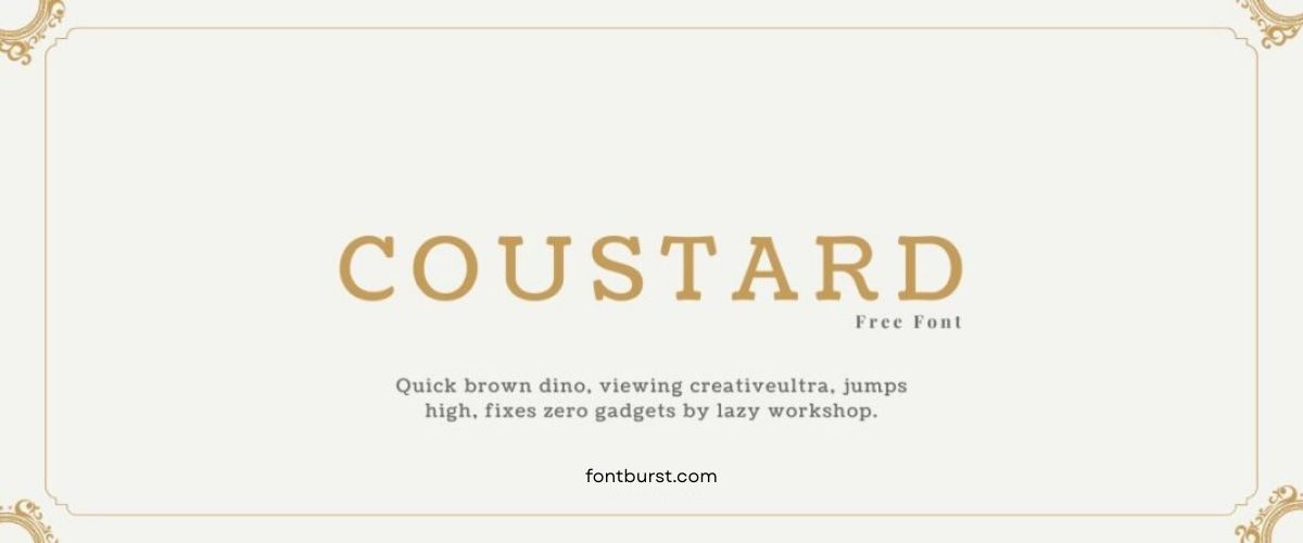 Coustard is a thick, heavy font that commands attention. It works well in headers or any place you need strong, impactful text.