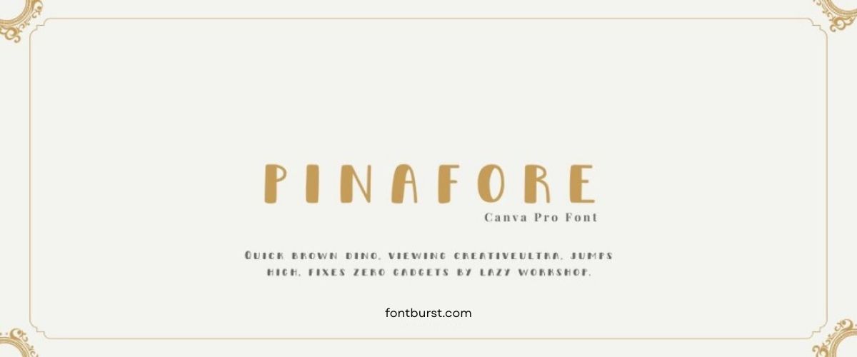 Pinafore is quirky and informal, ideal for casual designs, children’s books, or any project that benefits from a light-hearted, playful font.