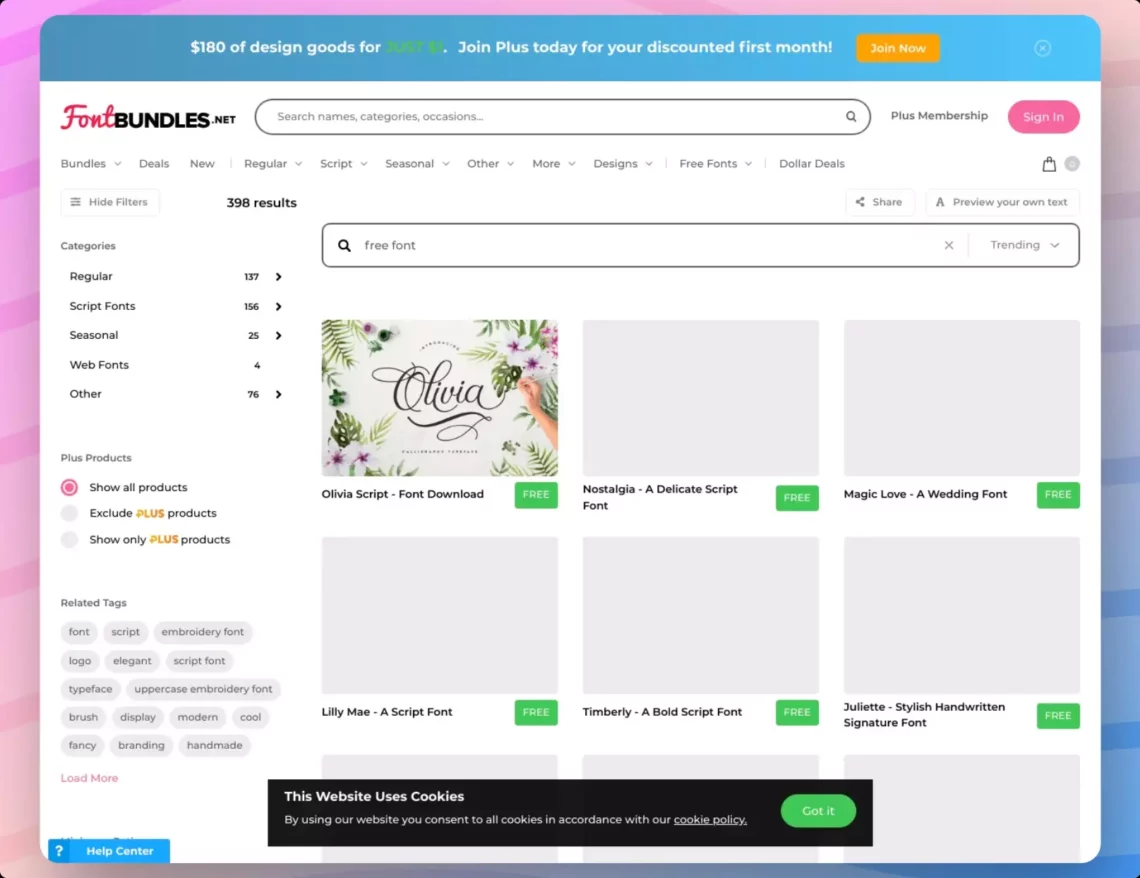 Navigate through Fontbundles, an enticing blend of free and premium fonts that cater to all your typography needs.