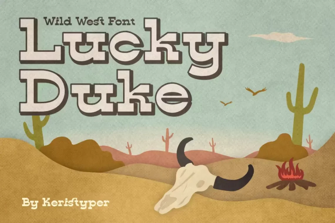 Introducing Lucky Duke font a western display typeface, inspired by cowboy wild west styles. This font is good for logo design, Social media, Movie Titles, Books Titles, short text even long text letters, and good for your secondary text font with sans or serif.