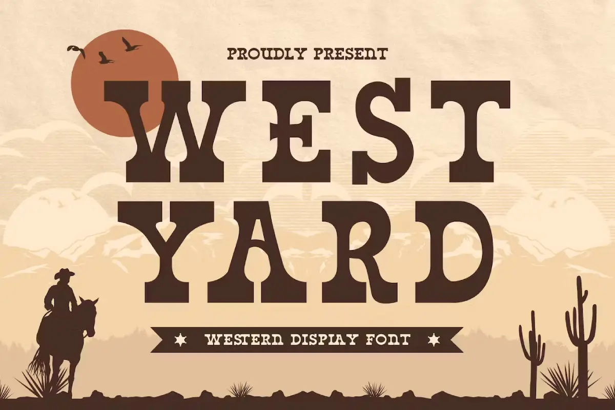 Introducing West Yard, a bold and western-inspired display font. It’s perfect for a wide range of creative projects, from cartoons and children’s games to quotes, titles, brand names, book covers, posters, and more. If you’re looking to add a touch of beauty to your creations, West Yard is the ideal choice.