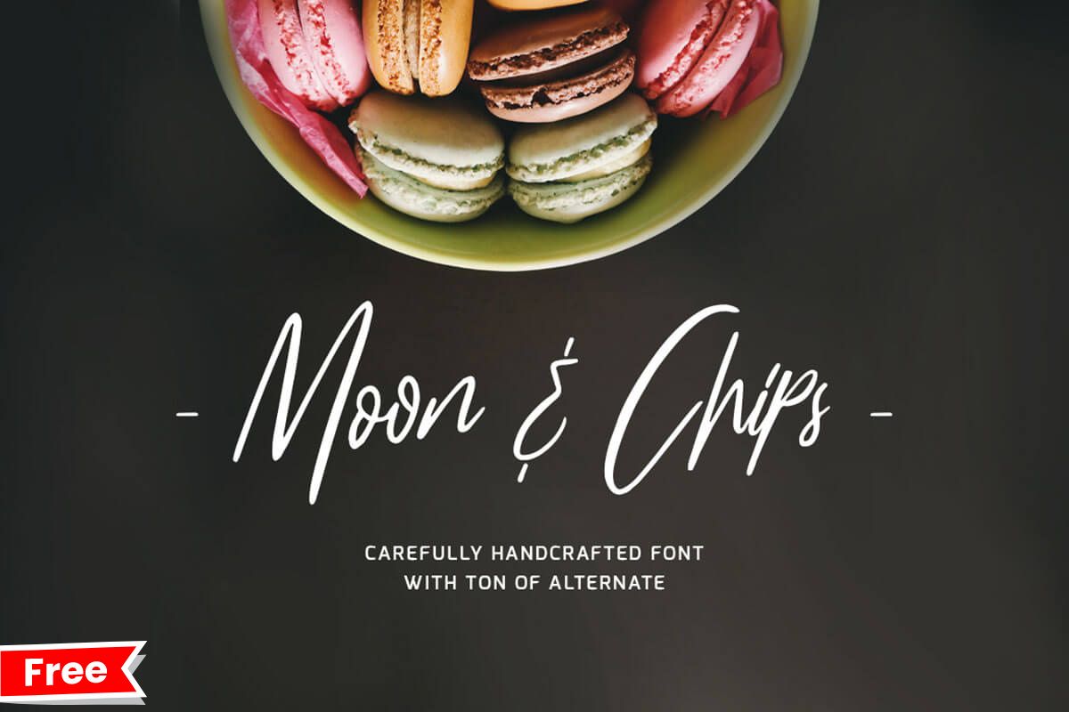 This new Moon and Chips Script Font is a hand lettered font. Created for everyone love making something beautiful, and special who loved to make a chips and other snack.