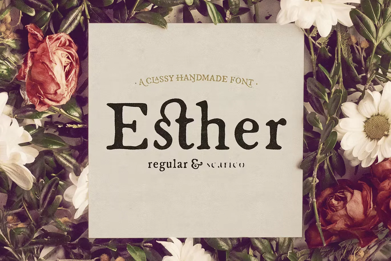 This font is the ultimate version of this serie, with serifs. Esther is ideal for cookbooks, menus, liquor bottle labels, food packaging, wedding invitations, greeting cards, tea boxes, food blogs, small shops, cupcake bakeries and so on.