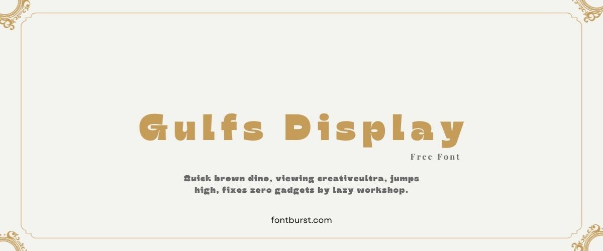 Gulfs Display is a bold and artistic font with details that look like they were drawn by hand. Its creative and odd style stands out, making it perfect for posters, ads, and social media graphics that get people’s attention. You can give your designs a fun and unique addition by using Gulfs Display.