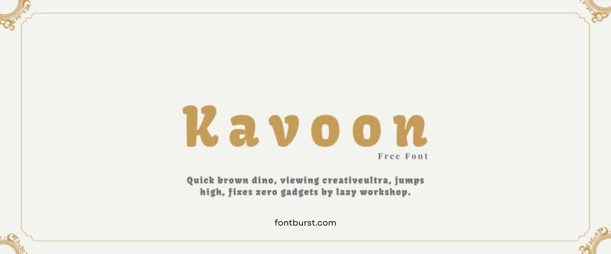 Kavoon is a fun, bold font that looks like a cartoon. Its thick, round letters give your projects a fun, lively feel. This makes it perfect for kids’ stuff, comic books, and fun branding. The Kavoon colour scheme adds a happy and lively feel to any design.