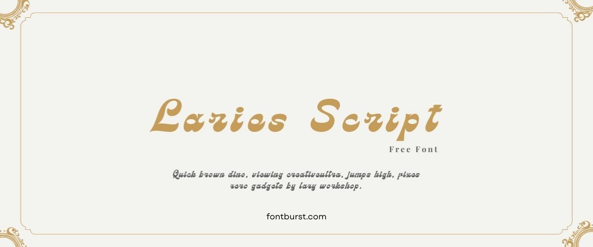 The Laries Script font is stylish and classy, with soft curves and a design that flows. It’s great for giving anything an extra sense of class. Laries Script gives your designs a classy, finished look that really stands out, whether you’re making wedding invitations, logos, or brand identities.