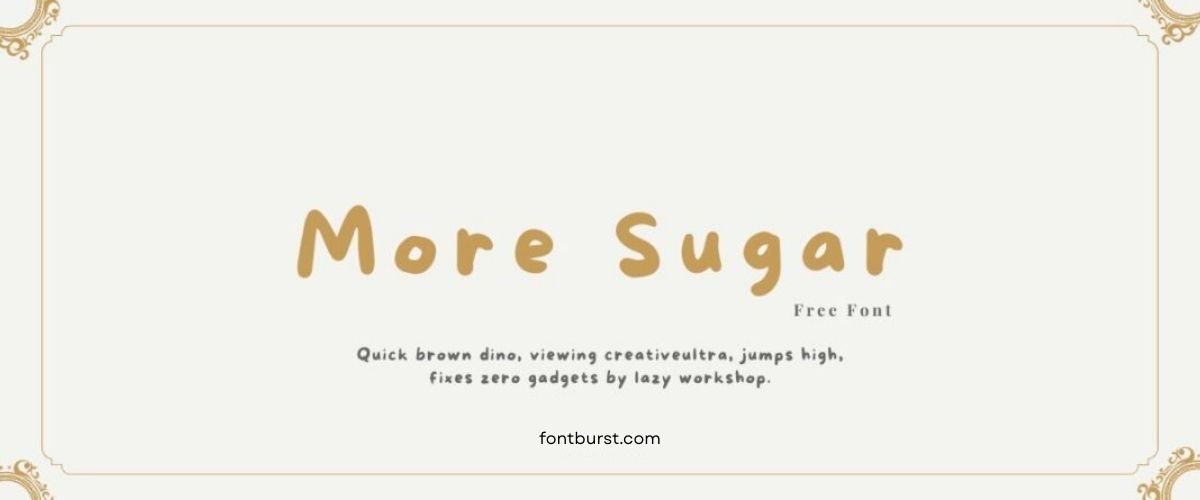 More Sugar is a sweet, round font that looks warm and friendly. It’s great for fun designs because of its soft curves and happy look. Adding a touch of warmth and happiness to posters, boxes, and greeting cards is easy with this. Any project looks better with more sugar.