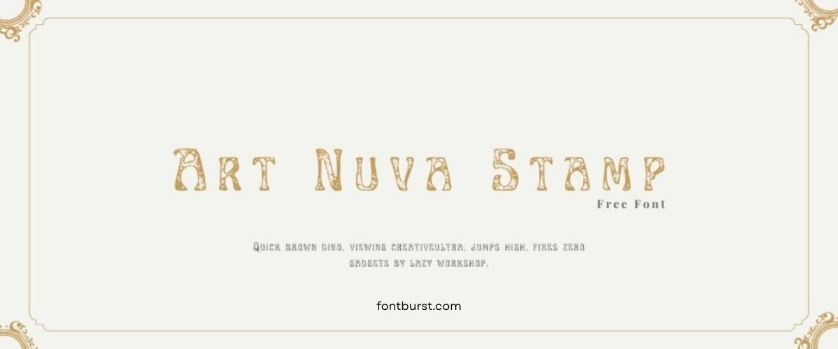 Art Nuva Stamp Font has a unique, stamped look. It’s perfect for adding an artistic touch to your projects, making your designs look creative and hand-crafted.