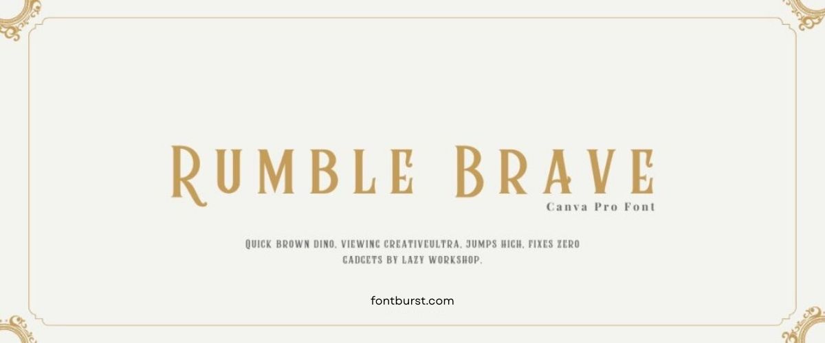 Rumble Brave Font is bold and vintage with fancy details. It’s excellent for designs that need elegance and grandeur, like headlines, logos, or attention-grabbing projects.