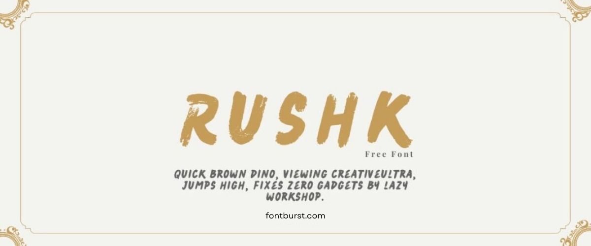 Rushk Font is bold and rugged. It’s perfect for projects that need a strong, sturdy look, like logos or posters, giving your text a powerful presence.