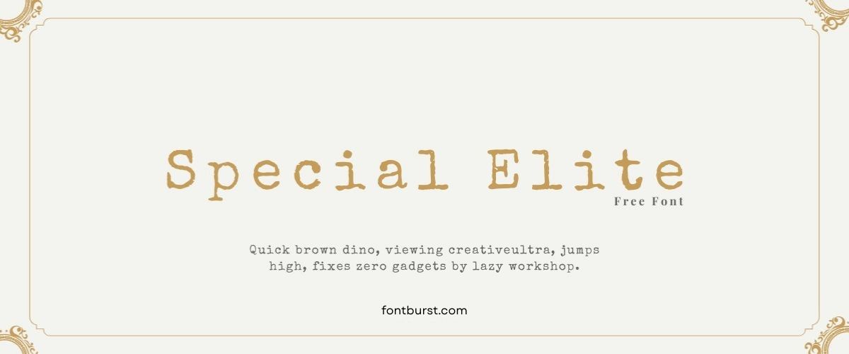 Special Elite Font looks like old typewriter text. It’s great for giving your designs a vintage or retro feel. Perfect for posters, invitations, or anything that needs a classic touch.