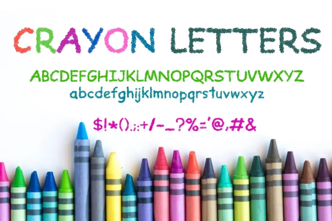This font imitates crayon writing, adding a youthful and fun touch to any design, especially suited for educational or kids’ themes.