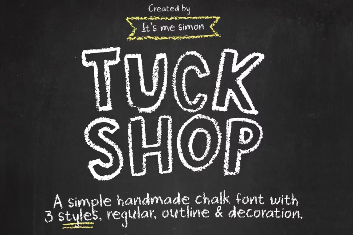A fun and casual font reminiscent of tuck shop signs, great for business signage or back-to-school projects.