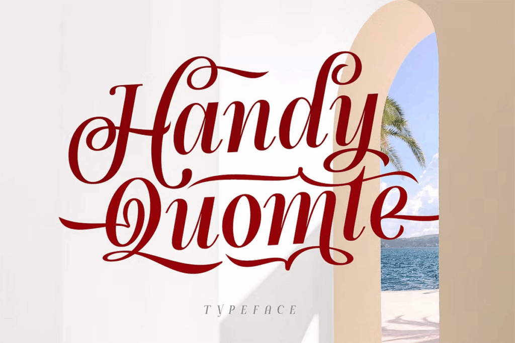 This one brings the drama. Handy Quomte is a decorative cursive font with bold strokes and exaggerated swashes that command attention. It instantly gives your design a premium feel without coming off as stuffy.