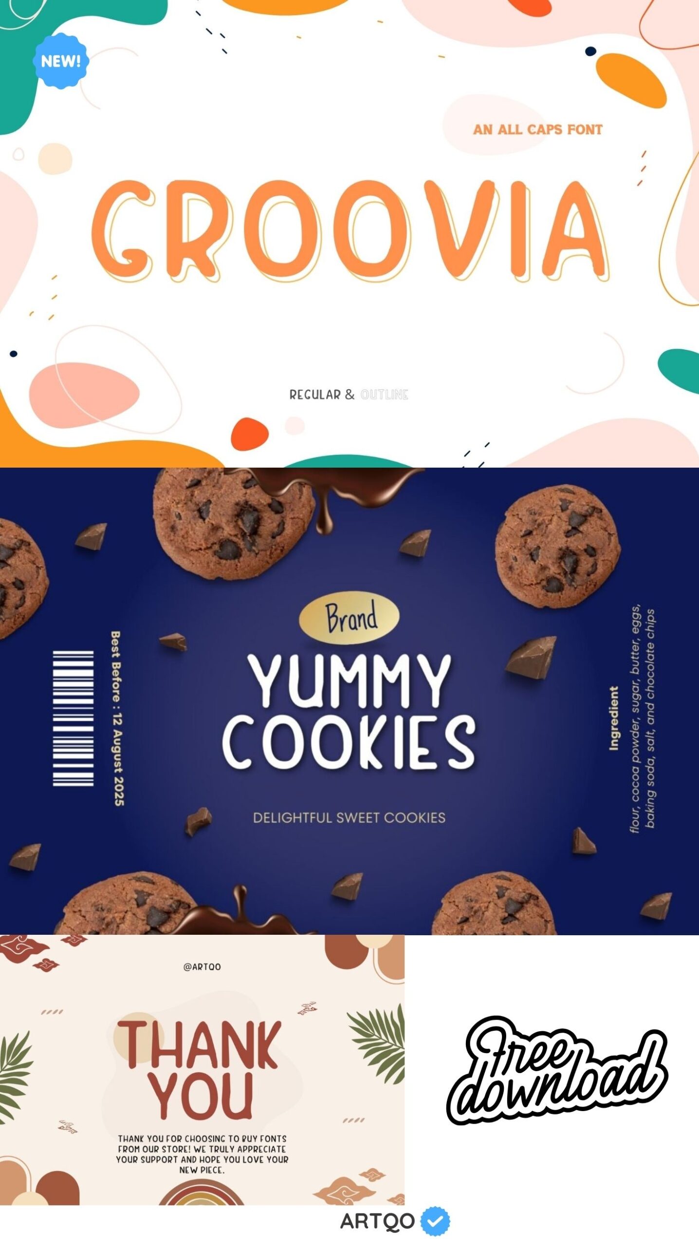 Introducing Groovia, an all-caps font that brings fun, creativity, and a sense of playfulness to any design. With its unique hand-drawn style, this font is ideal for branding, packaging, and creative projects where a relaxed and groovy vibe is key. The font comes in two styles: regular and outline, offering versatility to adapt to various design needs. Whether you’re creating eye-catching headlines, social media graphics, or product labels, Groovia’s rounded and wavy forms make sure your message stands out.