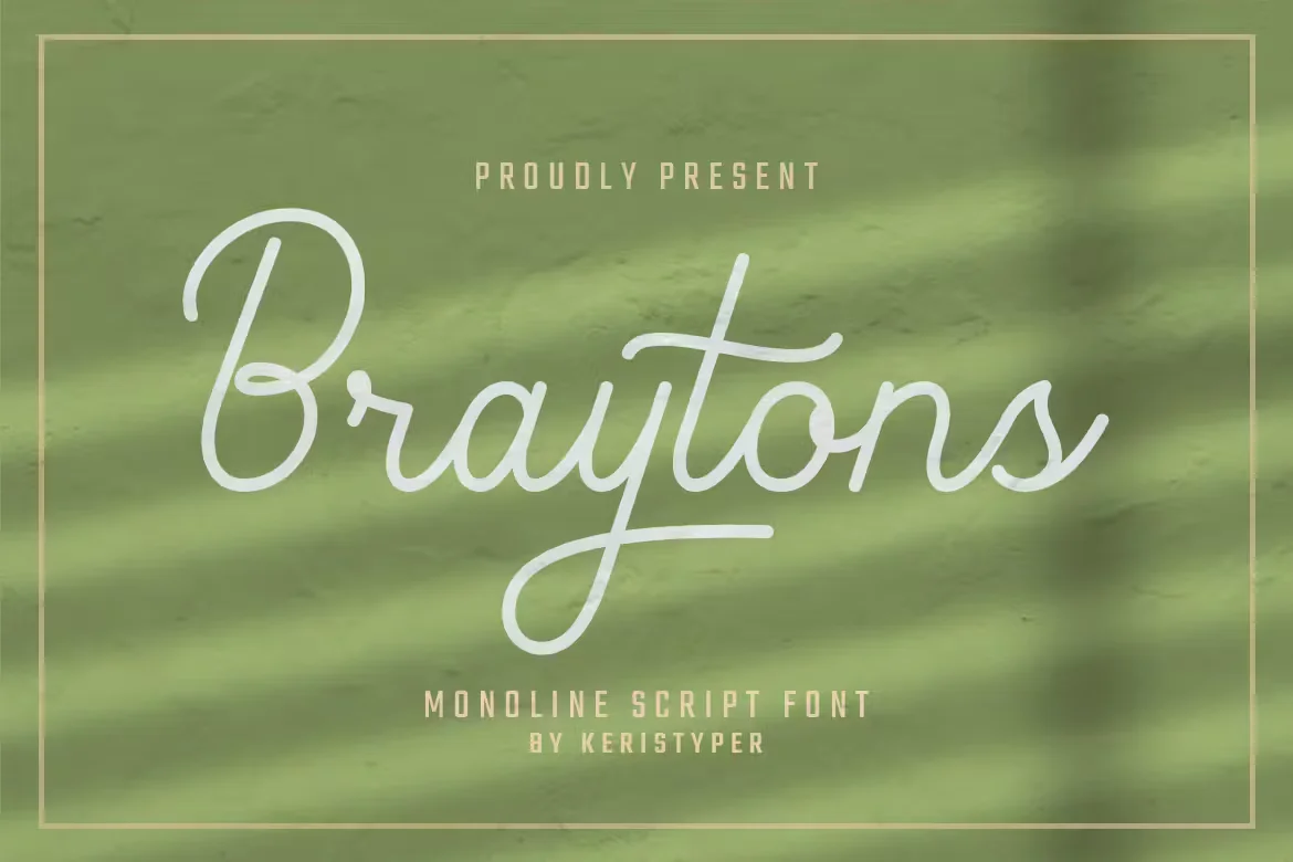 Braytons Script is a flowing monoline handwritten font, described by an elegant touch, perfect for your favorite projects. Fall in love with its incredibly distinct and timeless style and use it to create spectacular designs!