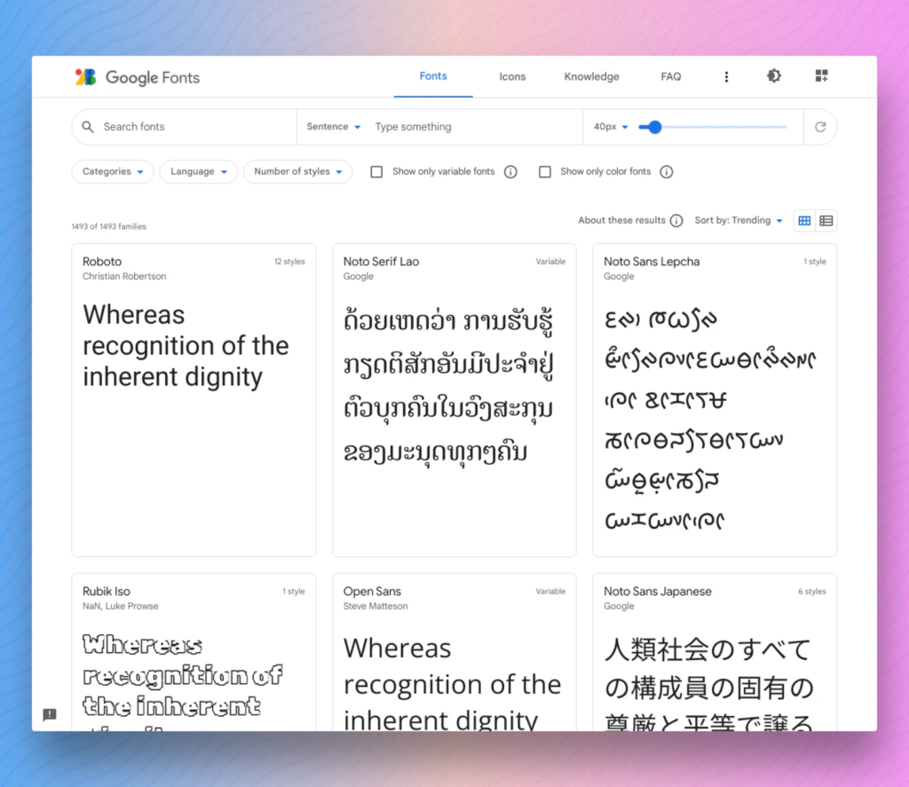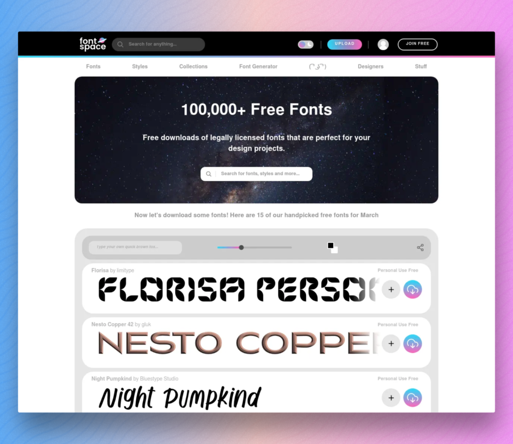 They offers a wide range of open-source free of cost font online. You can customise the fonts as per your choice and use it in your commercial as well as non-commercial projects. You can also choose from a variety of language that it offers.The website also allows you to adjust font size, properties and much more.