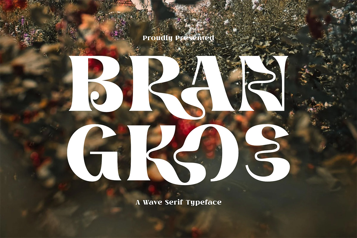 Meet Brangkos, a modern wave serif typeface inspired by the natural elegance of flowing water and organic landscapes. Designed to capture the rhythm of nature, Brangkos brings a sense of movement, softness, and bold personality into your branding.