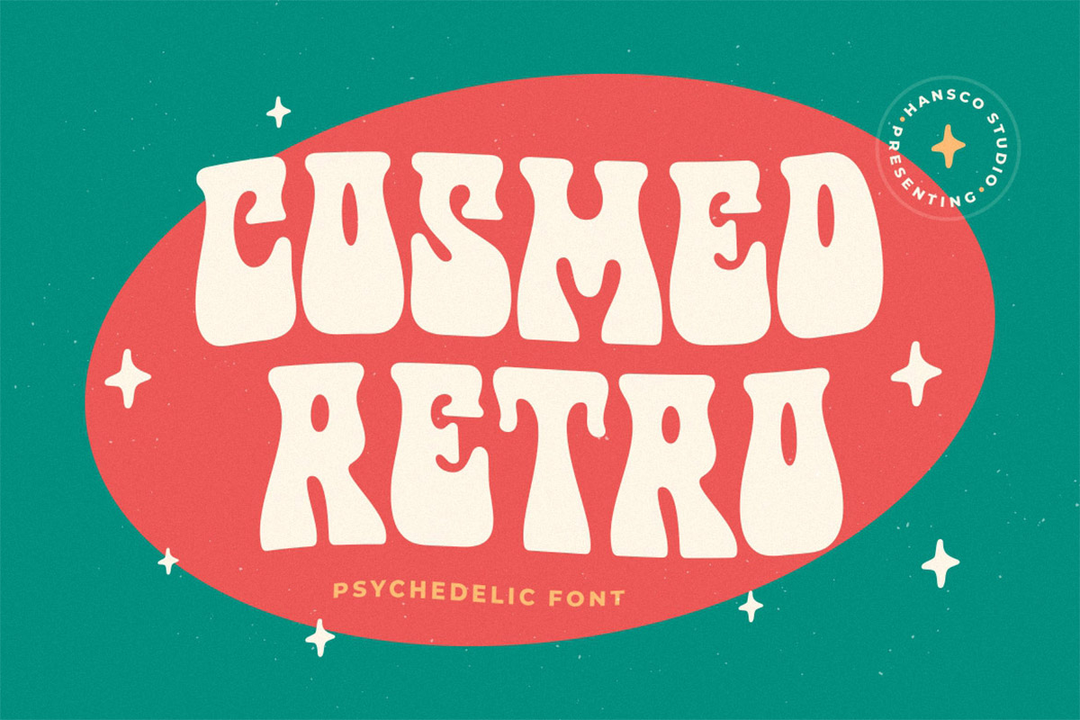 Cosmed Retro font is a retro psychedelic font style with wavy touch. Use this display font to add that special retro touch to any design idea you can think of. Very suitable for logotype, Stickers, Packaging design, t shirt or apparel industry, posters, magazines, books, YouTube, Instagram, websites, or any of your creative design projects.
