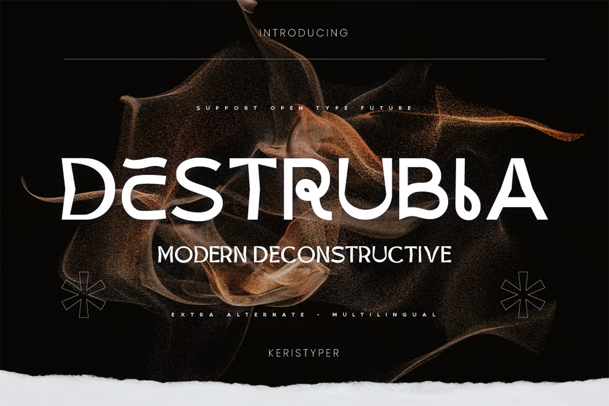 The Destrubia is made with the concept of a modern contemporary font display that gives a unique impression because it has a curvy and distortion shape. This font is good for logo design, social media, movie titles, books titles, short text even long text letters, and good for your secondary text font with the script, sans, or serif.