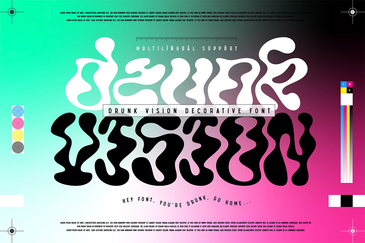 Hello! Introducing a creative font named Drunk Vision. It’s an abstract shape smooth typeface with trendy distorted shape.