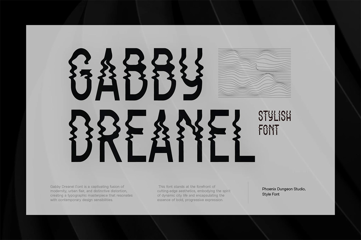 Gabby Dreanel Font is a captivating fusion of modernity, urban flair, and distinctive distortion, creating a typographic masterpiece that resonates with contemporary design sensibilities.