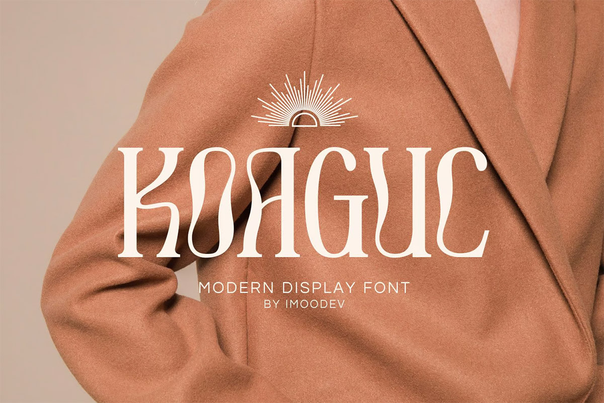 Koaguc is a luxury and modern serif typeface that blends traditional serif structures with whimsical, wave-like curves. The wavy effect is subtle yet eye-catching, adding a playful and artistic dimension to the letterforms.