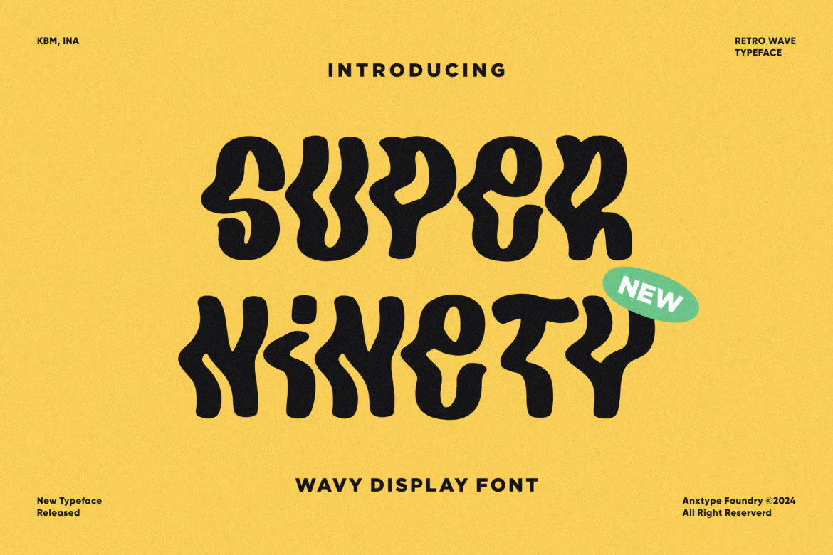Presenting ‘Super Ninety’ by Anxietype Foundry – a uniquely distinctive font that pulsates with undulating, groovy waves. Let this creative treasure embellish your branding endeavors or punctuate any design project with its exciting, dynamic energy. Make waves with Super Ninety – the seamless blend of modern chic with vintage charm.