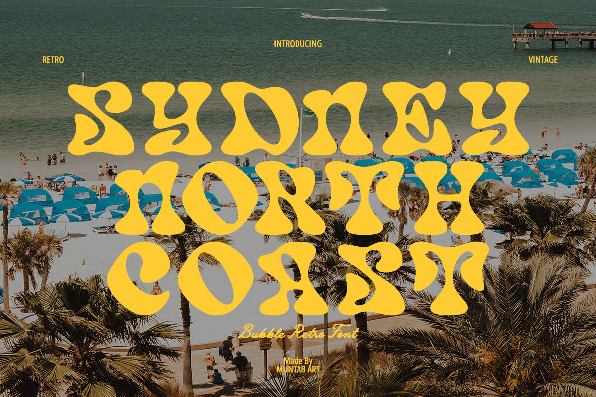 Sydney North Coast fonts is a bubble font with retro style font include uppercase letters, lowercase letters, numerals, a large range of punctuation. This font is created for poster, web design, branding, illustrations, badges, and some other works.